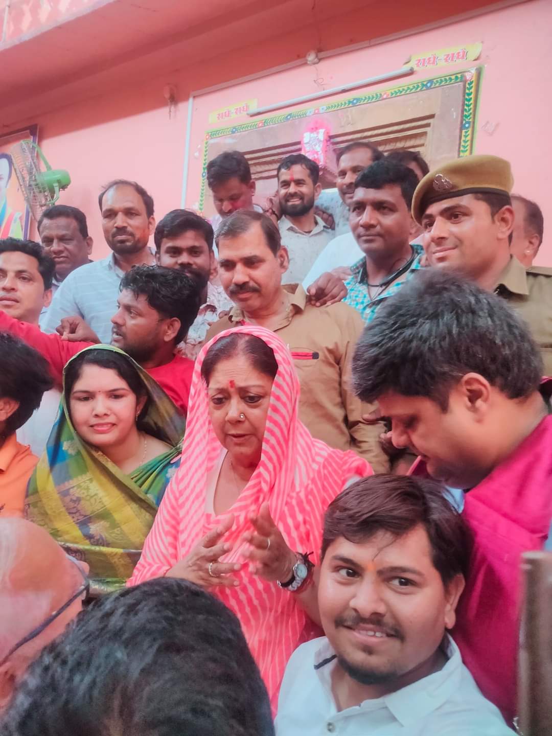 पूर्व मुख्यमंत्री वसुंधरा राजे इन दिनों झालावाड़ जिले के दौरे पर हैं। अपने झालावाड़ दौरे के चौथे दिन आज वसुंधरा राजे ने धार्मिक नगरी झालरापाटन पहुंचकर भगवान द्वारिकाधीश के दर्शन किए और आशीर्वाद लिया। इस दौरान सांसद दुष्यंत सिंह भी साथ मौजूद रहे। दर्शनों के बाद वसुंधरा राजे झालरापाटन विधानसभा क्षेत्र के रायपुर तथा पिड़ावा ग्रामीण अंचल के दौरे पर निकल गई। भाजपा की राष्ट्रीय उपाध्यक्ष और पूर्व सीएम वसुंधरा राजे पांच दिवसीय झालावाड़ दौरे पर हैं। अपने दौरे के चौथे दिन आज वसुंधरा राजे सबसे पहले झालरापाटन शहर के भगवान द्वारिकाधीश मंदिर पहुंची और 56वीं परिक्रमा कार्यक्रम में शामिल हुई। इस दौरान वसुंधरा राजे ने अपने पुत्र सांसद दुष्यंत सिंह के साथ भगवान द्वारिकाधीश की पूजा अर्चना की और आशीर्वाद लिया। इस दौरान विधायक नरेंद्र नागर, गोविंद रानीपुरिया, कालूराम मेघवाल, भाजपा जिलाध्यक्ष संजय जैन, श्रीकृष्ण पाटीदार, श्यामसुंदर शर्मा सहित कई भाजपा पदाधिकारी भी मौजूद रहे। राजे के झालरापाटन द्वारकाधीश मंदिर पहुंचते ही कार्यकर्ताओं ने राजे के समर्थन में जोरदार नारेबाजी की। परिक्रमा में शामिल होने पहुंचे श्रद्धालु भी वसुंधरा राजे से मिलने के लिए लालायित नजर आए। कई महिलाएं व बच्चे तो राजे के साथ सेल्फी भी लेते दिखे। प्रदेश की लोकप्रिय पूर्व मुख्यमंत्री को अपने बीच पाकर प्रभु की परिक्रमा में पधारे श्रद्धालुओं के बीच भरपूर उत्साह देखने को मिला।